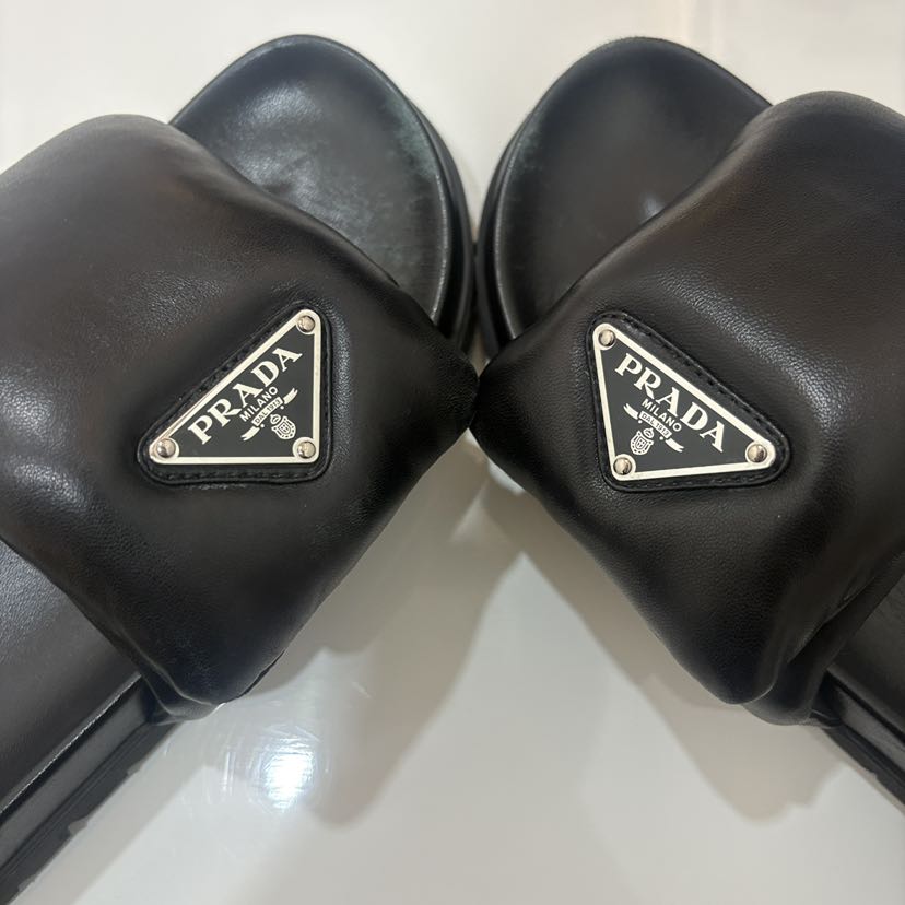 プラダ モノリス ソフト パデッドナッパレザー サンダルです。