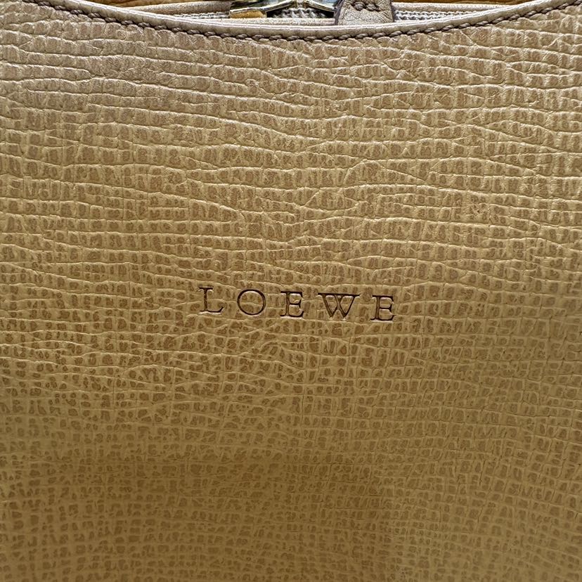 中央に「LOEWE」というアルファベットのロゴが型押し(エンボス加工)されています。最近のデザインでよく見る「アナグラム(4つのLを組み合わせたマーク)」ではなく、文字ロゴである点が、この時代のシンプルで控えめな美学を表しています。